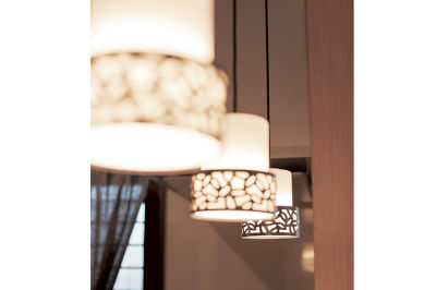 カウンターには、以前ダイニングで使っていたあかりを活用。インテリアに調和しています。