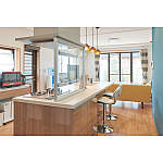 築30年を目前に奥様の念願だった対面キッチンへとリフォームされることに。配膳や片付けのためのスムーズな動線の確保ができる、アイランドキッチンをご提案。カウンターの両側からの回遊動線や娘様のご意見なども参考にしながら、思い切ってアイランドキッチンに決断されました。また立派なお庭がリビングから見えるため、キッチンとリビングを区切る間仕切りや垂れ壁をなくし、空間を広くしながらお庭へと視線が伸びる開放感をつくりました。