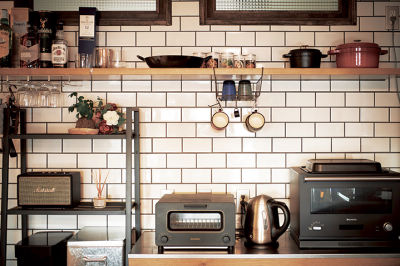 またキッチンの収納は「見せる収納」をメインに。お施主様がセレクトした食器や生活雑貨などが空間を彩るインテリアになり、センスが光ります。住居でなかったものを、住居にする。それもリフォームの醍醐味です。