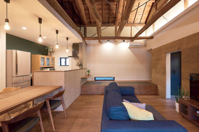 | テーマ | 団らんキッチン、古民家再生、自然素材、吹き抜け、耐震 |