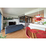 リビングはネイビー、キッチン・ダイニングは赤とテーマカラーを決めてハイセンスな空間を演出。在宅ワークにも適合した新しい住まいを実現しました。