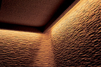壁を照らす照明の光の演出で上質な雰囲気に。光の色を変えて、バーのような空間を楽しむことも。みんなが集える美しい佇まいのキッチンとなりました。