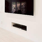 リビングのテレビ下には埋め込みのAV収納を設けて、見た目スッキリ。