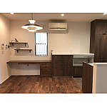 コロナ禍でテレワークのことを考えて、キッチン横にデスクワークやお子様の勉強が見れるようにデスクを併設しました。ウォールナットの無垢材の床をメインに壁、天井はスッキリとさせました。