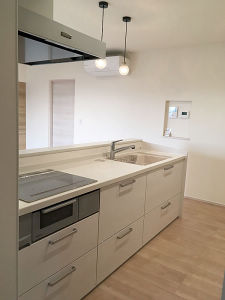 改装後は I 型の対面キッチンにしました。LD側の様子やTVを見ながら作業出来ます。