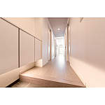玄関からLDKにつながる廊下は、天井を組み直して天井高を確保。通路の幅も広げ、間接照明を設置することでイメージも一新。