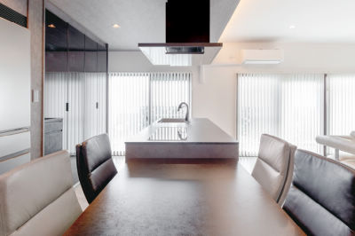 設備の老朽化をきっかけに「シンプル&ミニマム」をテーマにリフォームされたT様ご夫婦。モダンでトーンを抑えたインテリアをセレクトしたLDKは、ラグジュアリーホテルのラウンジのよう。徹底した収納計画によって表に出る“モノ”を減らし、生活感をミニマムに。見せない工夫を詰め込んで、居心地のよい暮らしを実現しました。