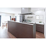 家族が一緒になって「つくる」「食べる」「語らう」ことができる大空間LDK 。ウォールナット柄のキッチンや床が、上質さをさらに際立たせます。