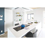 夫婦ふたりの時間をゆったりとしたものにしたいとリフォームをされたU様。使われていなかった8畳の和室をコンパクトにし、囲炉裏のように囲んで使えるキッチンを中心とした居心地のよいLDKが完成。気にされていた風通しも、大きく開閉できる扉によって改善されました。
