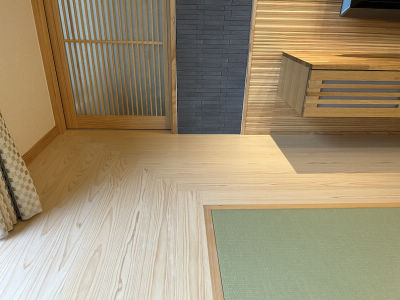 桧の縁甲板は琉球畳との相性もよく、細部にもこだわりぬいた上品な仕上がりに。