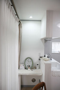 キッチン背面にできたスペースにインテリアカウンターを設置しました。小物を飾ったり、ご主人様の仕事スペースとしても有効的に使うことができます。