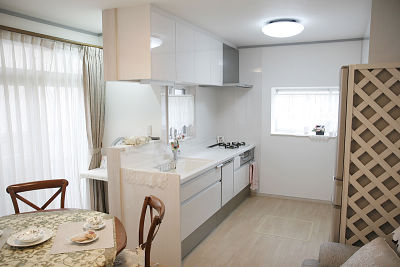 キッチンとダイニングスペースをあえて区切ることで、無駄なスペースがなくなりました。作業スペースも確保され、動線も良くなり、明るく開放的でスッキリとしたLDKになりました。