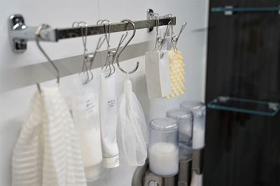 モノトーンでコーディネートされた浴室。カウンターやフロフタなど不要なモノは無くし、スッキリとしたお掃除がしやすい浴室に。