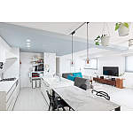 リビングに隣接していた和室も取り込んで広く開放的なLDKに。白を基調にして明るく、洗練された空間に生まれ変わりました。