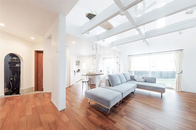 ご夫婦好みのカリフォルニアテイストを取り入れ、LDKと水廻り・廊下をつなげて吹き抜けのある大空間へと一新。