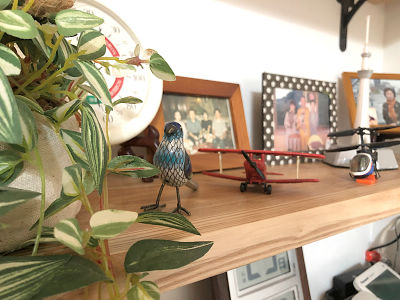 レンジフードの背面は収納スペースになっており、雑貨やご家族のお写真が飾られています。