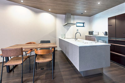 視界を遮るものがないフルオープンのキッチン。家事をしながら、家族みんなの様子を見渡せます。