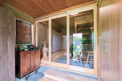 寒さ対策として引き戸を設置し、室内側との段差も式台で解消。玄関ホールの一角に念願の接客スペースを設け、昔ながらの風情を残しつつ、安心感のある空間になりました。