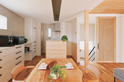 リビングの扉は、縦格子を採用。ほどよい抜け感と和のぬくもりも感じさせます。