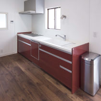 キッチン位置を変えて対面型にし、カップボードも設置して、家事効率を上げました。買った食材等も勝手口から直接運び入れることができます。IHクッキングヒーターを入れるのを機に、エコキュートも導入してオール電化に。光熱費も削減しました。