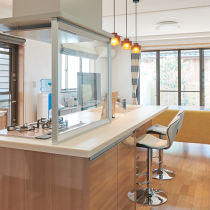 キッチンとリビングが近くなり、作業をしていても家族と会話ができるようになったと、奥様からお喜びの声をいただきました。