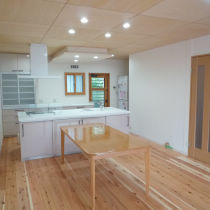 離れのように使っていた別宅の老朽化が気になっていたY様。「奥様がお友達を招待してのんびりお茶会などを楽しめるスペースにしたい」とリフォームすることに。キッチンは木目が美しい対面式カウンターに変更し、壁や天井には杉板を貼ることで全体的に和風なナチュラル空間へ仕上がりました。デザイン窓がお部屋にモダンさをプラスしてくれています。