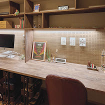 木目調×グレー色の 落ち着いた空間にお好みの アイテムをコーディネイト[広島県]