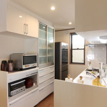 ゆくゆくは娘達の家になる…その時に娘達が困らないように。と、使い勝手が悪くなった水廻りや手狭になったキッチンをリフォーム。隣に住む娘夫婦と孫2人を合わせた8人がゆったり食事できるダイニング、3世代で一緒に料理ができる広いキッチン、増えていく荷物をスッキリ片付けられる、たっぷりの収納。
