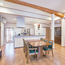 和歌山県親から受け継いだ愛着のある家屋。しかし段差も多く、今後の生活に不安がある。そこで居住スペースの段差を減らし、バリアフリーを目指しつつ、普段活用されていない和室を取り込み、ゆったり広々としたリビングへとリフォーム。DK部分を配置替えし、新たにウォークインクローゼットを設けた。強度を保つため、梁を渡し、築70年ならではの『和』を残した。施工店: 株式会社木地由ナショナル建材社(旧:リファイン和歌山東)