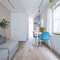かつてのY様邸はオーソドックスな間取りのマンション。ご夫婦のライフスタイルではあまり使わない部屋があり、その一方でLDには物があふれていました。室内に風を通したいとのご要望もあったため、一部の壁を取り、間取りを変更。引き戸を開ければ新LDKからホビールーム、寝室へと人も風も動けるようにしました。
