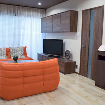 高齢者施設から自宅生活を選択されたS様。1階は車いす生活に必要な機能を集約し、ベッドスペースも設けたワンルームに。施設と同等の快適性を目指してバリアフリー化はもちろん、介助者も使いやすいようプランニングし、耐震・断熱・耐久性も最高等級の評価を取得。長く住み続け、次世代へと住み継がれる家に仕上げました。施工店: 松本設計ホールディングス株式会社