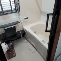 浴室は経年劣化で汚れてしまった浴槽やタイル・壁を、一新し、カラーも大幅にチェンジ。