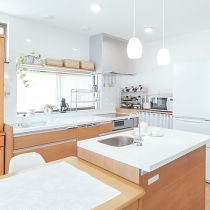 キッチンにはお掃除がラクな設備を採用し、忙しい奥様をサポート。間取りを大胆に変更して生まれた広々LDKに家族の笑顔が集まります。施工店: 丸良木材産業株式会社(旧:リファイン貴志川)