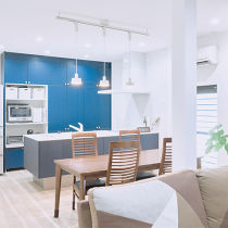 斬新な色使いや配置にしたいというご要望に応え、各部屋にネイビーを取り入れたコーディネイトで上質感のある住まいに。独立していた3部屋をまとめてLDKにして、動線と使い勝手を改善しました。施工店: 株式会社ヤマガタヤ REFORM Garden