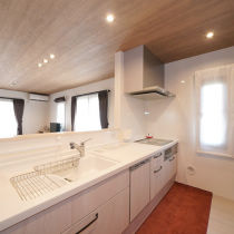 奥様のご両親のそばに住みたいとお考えだったS様。新築も検討されましたが、ご両親がほとんど使っておられない、広いご実家の2階をS様ご家族用にリフォームして同居されることに。2階からの眺望は抜群で、窓に自然の風景が広がり、夏には花火大会も鑑賞できます。その良さを生かし、開放的でおしゃれなLDKをとご希望になりました。そこで、壁を1つ取ってゆとりあるLDKを新設し、窓際に眺めが満喫できるカウンターを設置しました。天井も可能な限り高くしたうえで、一部を折り上げ天井風にしています。