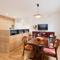 キッチンの収納量不足にお悩みだったJ様。和室を取り壊してLDKを広げ、キッチンを対面プランに変更。後方には大容量のカップボードを配置しました。抜けない柱と壁の間のスペースを活用してパントリーも新設。ガラス戸など和の風情も残すスッキリ片付いたLDKは居心地満点で家族の会話が絶えません。施工店: リファイン瀬田 株式会社エルアイシー(旧:リファイン瀬田)
