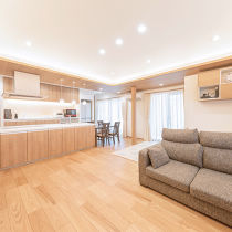 ご両親と過ごした楽しい食卓をふたたび叶えられるよう、LDKは現代の暮らしに合わせた木のやさしさに包まれる空間にアップデート。耐震性・断熱性も確保し、将来も安心な住まいに。