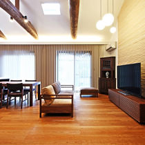 高い断熱性能のおかげで、リビングは夏でも風が通るとエアコンなしで涼しく過ごせるのだそう。「大好きな木の香りに包まれて子供と過ごす生活に満足です」と話されていました。施工店: リファイン駅家 株式会社古川(旧:リファイン駅家)