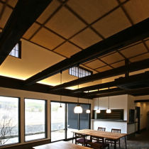 S様邸は、築180年以上。長い歴史を刻んできたその住まいは、「あちこちから隙間風が入り、冬はとても寒く、どれだけストーブを焚いても暖かくなりませんでした」とS様が振り返るように、寒さと老朽化が最大の悩みでした。快適で安心して住めるようにと、S様はリフォームを決断。古民家と現代建築を融合させる計画を立てました。何部屋もあった和室は減築し、断熱材を敷き込んで断熱性をアップ。土間コンクリートを打ち、耐震補強も行いました。また、以前から使われている立派な柱も再利用。歴史の風格漂う室内からは、玄関ホールのモニュメントが大きな一枚絵のように見え、圧巻のひと言です。「お客様に『料亭みたい』と言ってもらえます」とS様はうれしそうに教えてくれました。施工店: 株式会社U建築(旧:リファイン飯田)