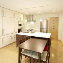 階段など制約が多いワンルームマンションを一家4人で住む住宅に、と建替えも含めて検討されていたH様。断熱・防音の基本性能と最新設備を活用した居住性能アップに加え、お菓子作り教室も開けるダイニングを設けた提案がH様の心をとらえました。1階には工房として使える業務用キッチンを設置、3階の寝室は二人のお子様の子供部屋として使えるように、間仕切りを想定するなど、細かな心配りも。施工店: 平和住宅建設株式会社 平和住宅リフォーム (旧:リファイン大久保)