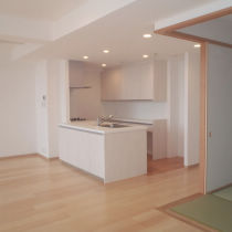 築32年のマンションをリフォームして住み替えされたO様。洋室を取り除くことで、日が降り注ぐ明るく開放的なリビングを創出。和室の引き戸を開放すればリビングと一体化し、LDKがさらに大空間に。お子様たちとの自由な時間が広がる場所になりました。施工店: リファイン相模原中央 株式会社美都住販(旧:リファイン相模原中央)
