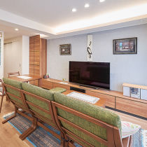 かつてのY様邸はオーソドックスな間取りのマンション。ご夫婦のライフスタイルではあまり使わない部屋があり、その一方でLDには物があふれていました。室内に風を通したいとのご要望もあったため、一部の壁を取り、間取りを変更。引き戸を開ければ新LDKからホビールーム、寝室へと人も風も動けるようにしました。