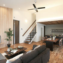 ご家族が自然に集う居心地のよいLDKと、各世代のプライベート空間を確保。耐震性・断熱性を高めて、末永く安心して暮らし続けられる住まいとなりました。施工店: 弘木屋産業株式会社