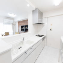カフェ風のキッチンで妻や娘と一緒に楽しく過ごしています。[京都府]