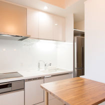 カフェ風のキッチンで妻や娘と一緒に楽しく過ごしています。[京都府]