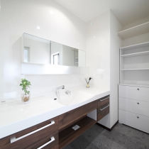 ゆったり広く、収納スペースも確保。暖かい環境で、お掃除もラクラクなサニタリー。[和歌山県]