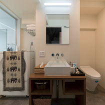 ホテルライクな一体型の洗面室 ガラス壁の明るいバスルーム[滋賀県]