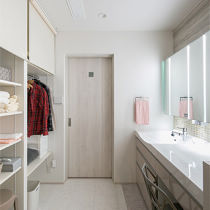 玄関ホールからお風呂へ直行。 ワンルームでつながる開放的な家。[京都府]