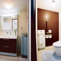 狭い洗面所と浴室をゆったり感じられる個室空間に。[和歌山県]