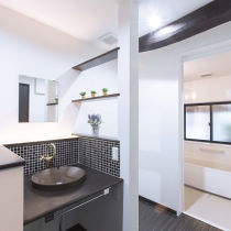 狭い洗面所と浴室をゆったり感じられる個室空間に。[和歌山県]